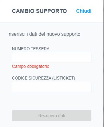 5-Cliccare sulla voce “Cambio Supporto” in blu. Una volta completata questa procedura, l’abbonamento sarà caricato – in maniera del tutto automatica – sulla Card del nuovo tifoso. Nel caso si stesse utilizzando il cellullare, si deve scorrere verso destra.